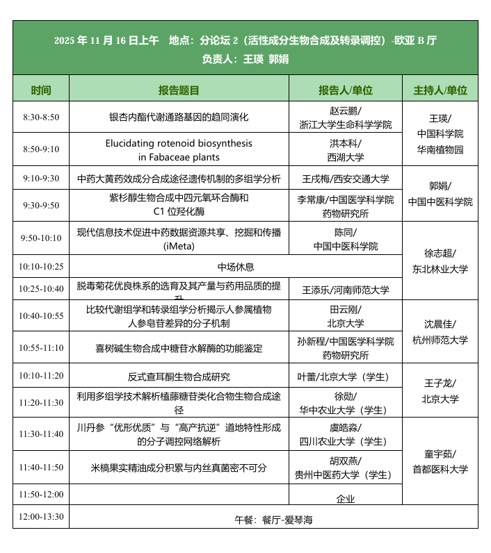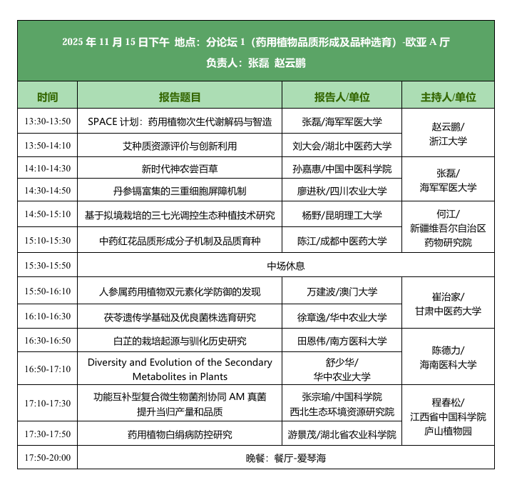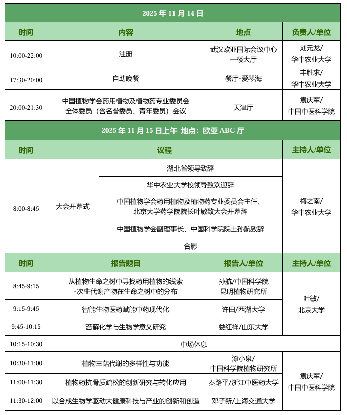为了全面贯彻党的二十大和二十届二中、三中全会精神,加快构建现代化产业体系,形成传承创新并重、布局结构合理、装备制造先进、质量安全可靠、竞争能力强的中医药产业高质量发展格局,更好增进人民健康福祉,服务中国式现代化。中国植物学会药用植物及植物药专业委员会联合华中农业大学拟于2025年11月14-17日在湖北武汉共同主办“中国植物学会第二十届全国药用植物及植物药学术研讨会”。大会特邀知名专家学者:中国植物学会副理事长、中国科学院院士、中国科学院昆明植物研究所孙航研究员,中国科学院院士、微生物代谢国家重点实验室主任、上海交通大学邓子新教授,西湖大学副校长许田教授等,就国内外中药资源的可持续利用、人工智能赋能中药现代化等方面研究的发展趋势、最新进展及热点问题等作大会主旨报告,诚邀各界专家学者与行业同仁共聚武汉,共谋中药产业高质量发展!