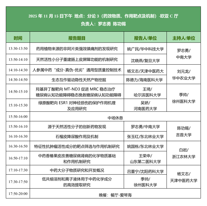 参会及申请报告人需要通过会议注册网站(https://zwyy.scimeeting.cn)提交中文版的会议报告摘要(不超过500字)及个人简介(不超过150字)等信息。会议报告语言为中文,特邀报告30分钟,专题报告20分钟,PPT为中文或中英文对照。墙报页眉应标注“2025年第20届全国药用植物及植物药学术研讨会· 湖北”,并注明题目、作者、单位、通讯Email邮箱,正文由研究背景及目的、主要方法、结果与结论部分组成,结果由4-5个大图构成。墙报大小为0.9米(宽)*1.2米(高)。