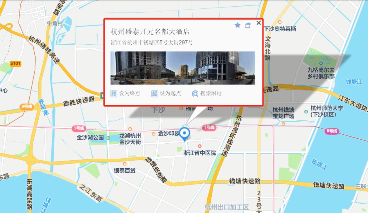 杭州盛泰开元名都大酒店(地址:杭州市钱塘区下沙经济开发区5号大街297号)。