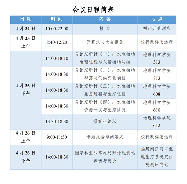“第六届全国水生植物资源与环境学术研讨会”定于2026年4月24-26日在福建省福州市召开。现将有关会议进展事项通知如下:
