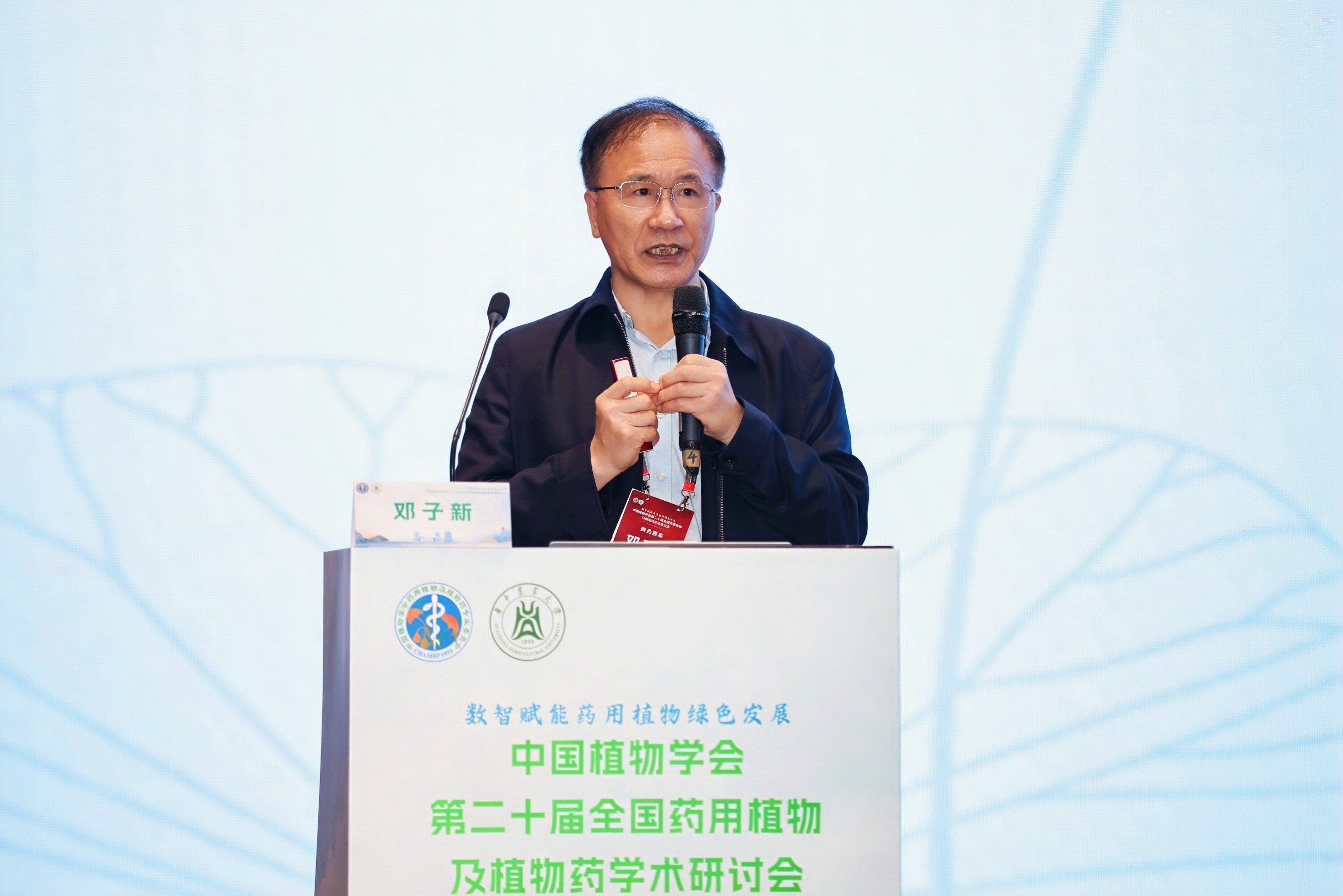 中国植物学会副理事长、中国科学院院士孙航代表中国植物学会致辞,他强调,药用植物是中医药事业的核心资源,其绿色发展和可持续利用关乎行业未来。进入数字时代,大数据、人工智能等技术正推动药用植物及植物药研究从传统经验型向科技驱动型的跨越式发展,在资源动态监测、栽培的自动化管控、功能基因挖掘和新药创制的智能化等方面展现出巨大潜力。他号召与会专家围绕资源可持续利用、经典名方挖掘、新药创制等方面与数智化的深度融合进行深入研讨,共同推动中医药事业高质量发展。
